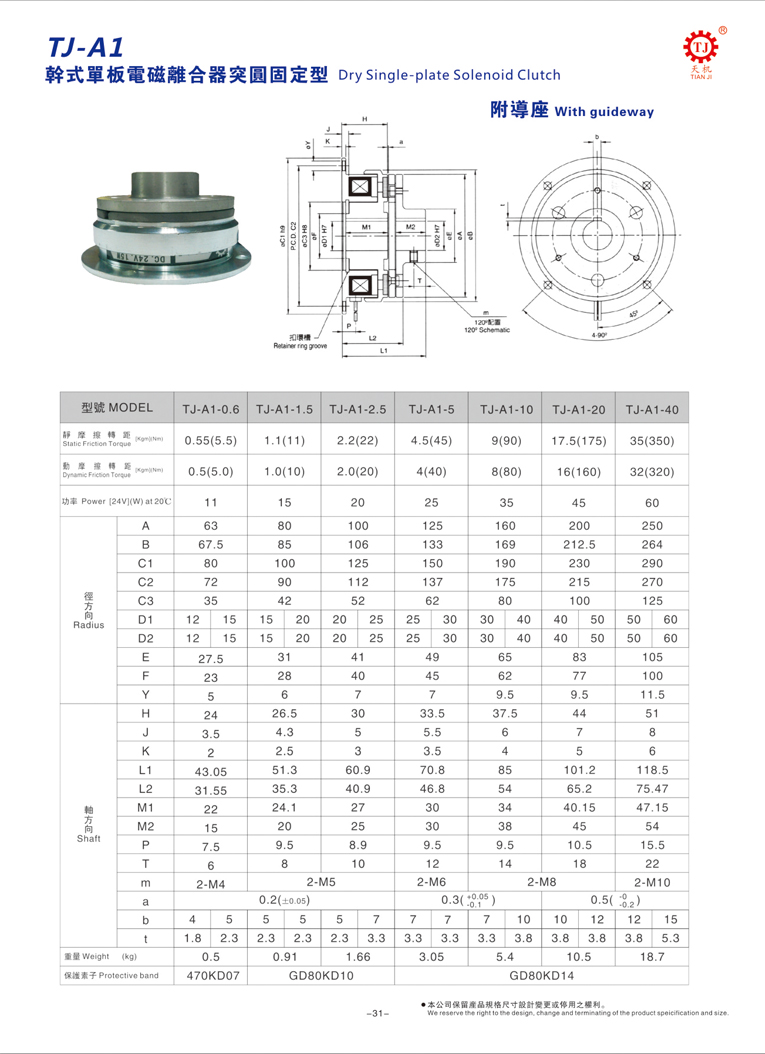 DC24V伏直流干式多片電磁...產品簡介: TJ天機牌系列DC24V伏直流干式...