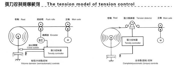 該型張力控制器通過滾輪施加負(fù)載,使板簧產(chǎn)生微位移(約±200μm),然后通過差接變壓器檢測出張力。傳感器采用差動(dòng)變壓器結(jié)構(gòu),溫度穩(wěn)定性好,線性度高。應(yīng)用例如下: